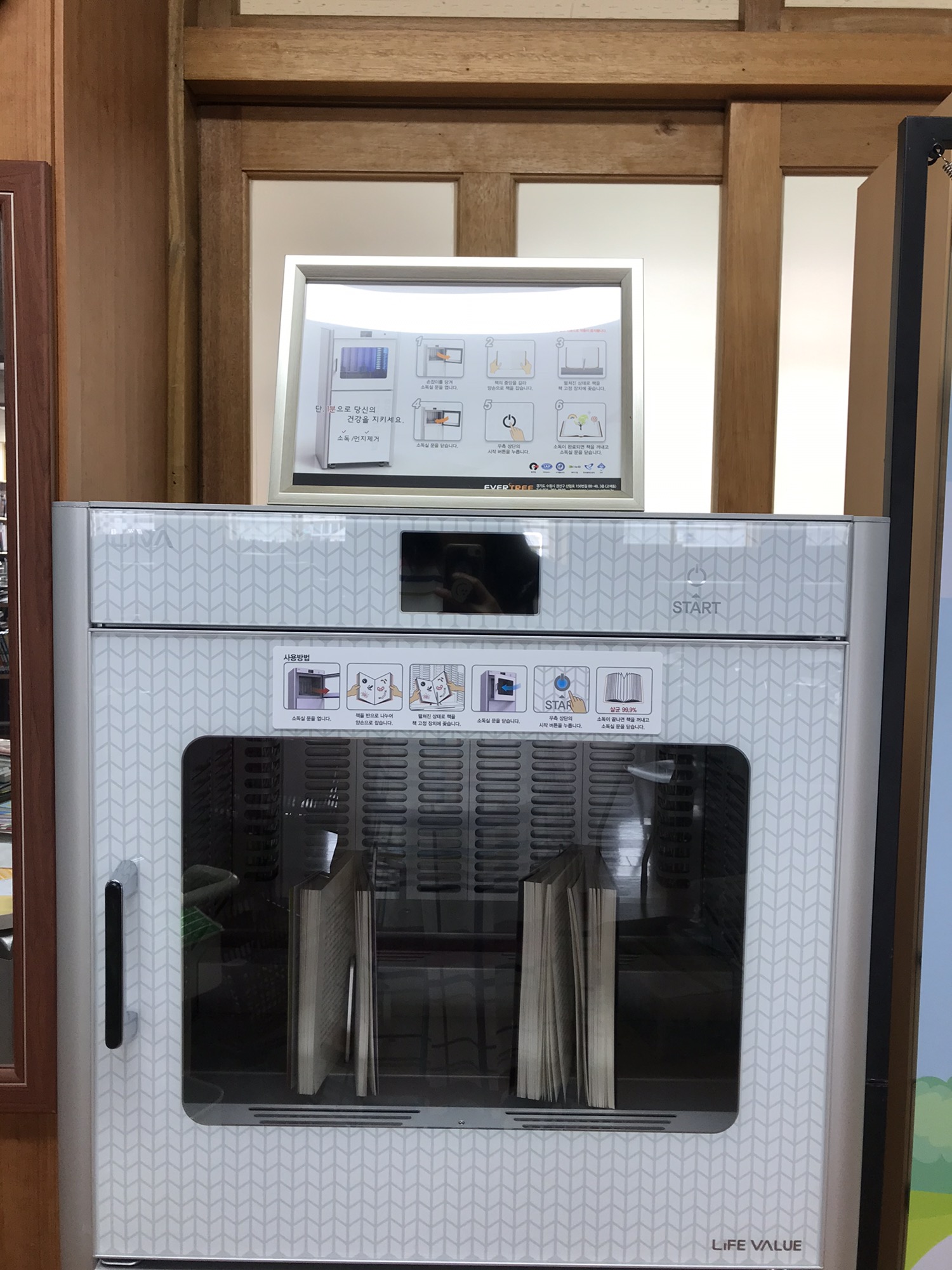 책 소독기를 구입하여 대출/반납 되는 모든 책을 소독하여 관리하고 있습니다.